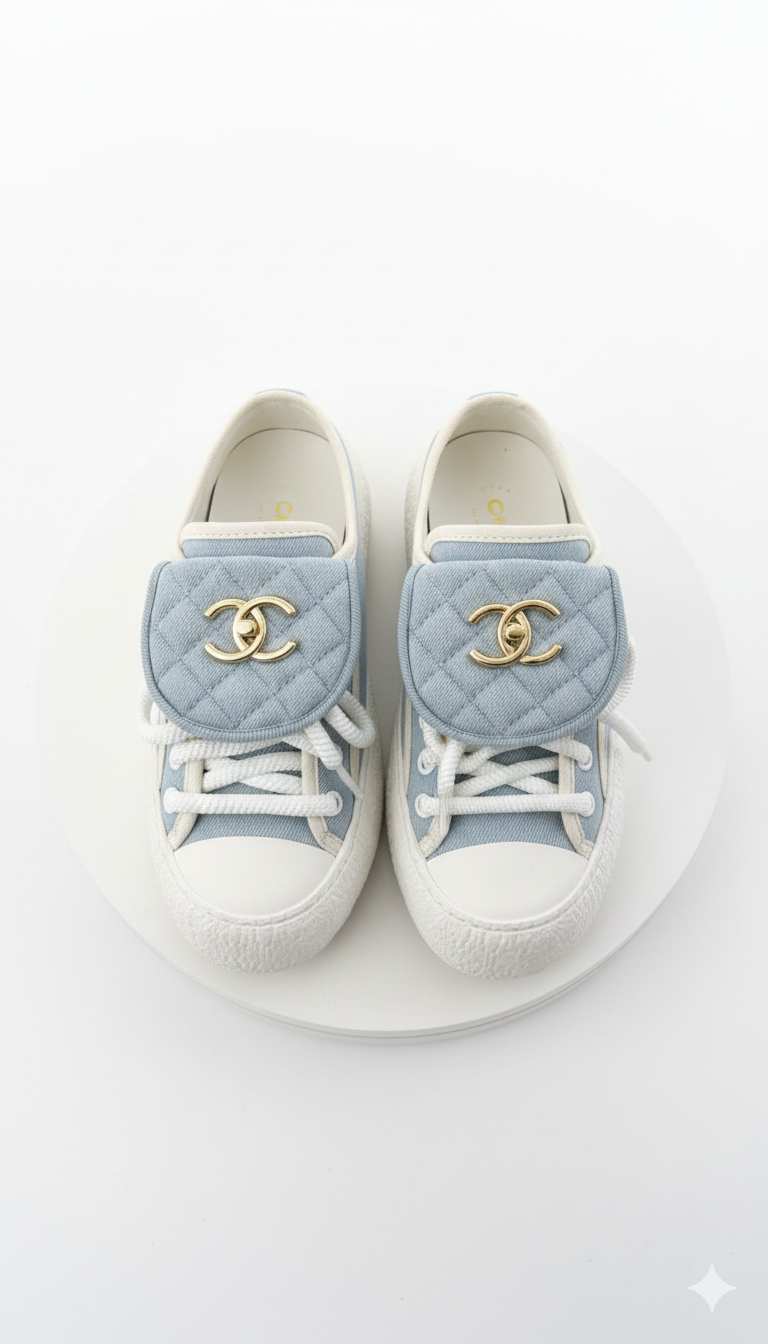 Material: Features a premium quilted denim fabric upper with a textured, diamond-stitched finish.
