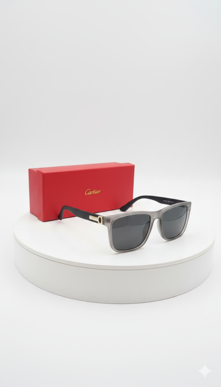 Frame Material: Translucent grey (smoke) acetate front with matte black temples