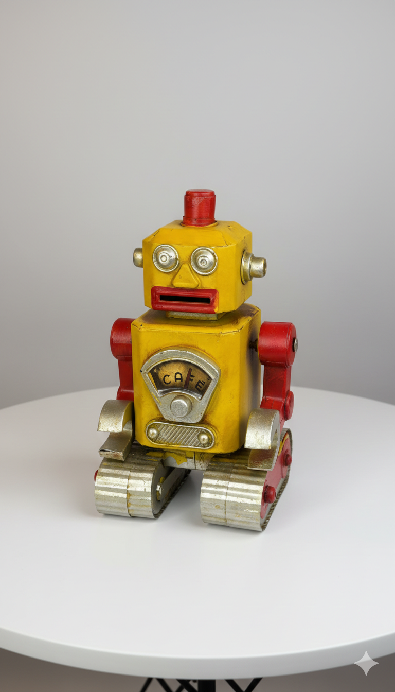 Vintage-Style Yellow Tin Robot Collectible – "CAFE" Edition Master Quality